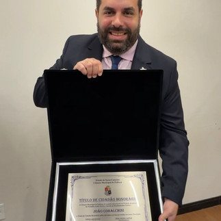 O Presidente da Câmara Municipal de Florianópolis, Vereador João Cobalchini, recebeu na noite desta quinta-feira (23) o título de Cidadão Honorário do Município de Palhoça. Foi durante a sessão solene da Câmara de Vereadores por ocasião dos 132 anos de emancipação política da cidade.